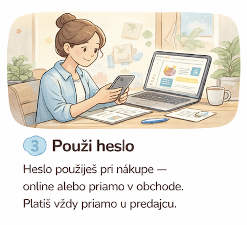 Každý predajca si vytvára vlastné unikátne heslo, ktoré zákazník použije pri nákupe.